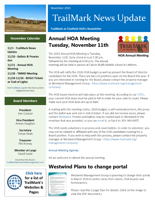 The November issue of the TrailMark Newsletter has been emailed out to the TrailMark community. It can be viewed online at: https://www.trailmark.org/newsletter/.