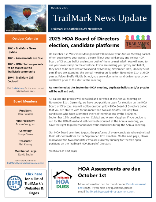 The October issue of the TrailMark Newsletter has been emailed out to the TrailMark community. It can be viewed online at: https://www.trailmark.org/newsletter/.